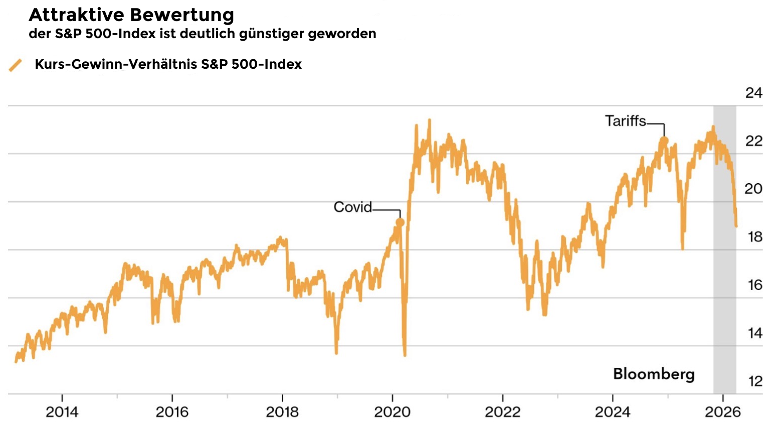 US-Aktien sind beispielsweise 20 Prozent niedriger bewertet als noch im Dezember 2025.